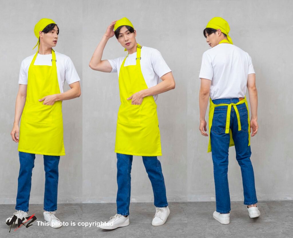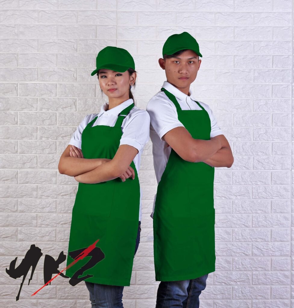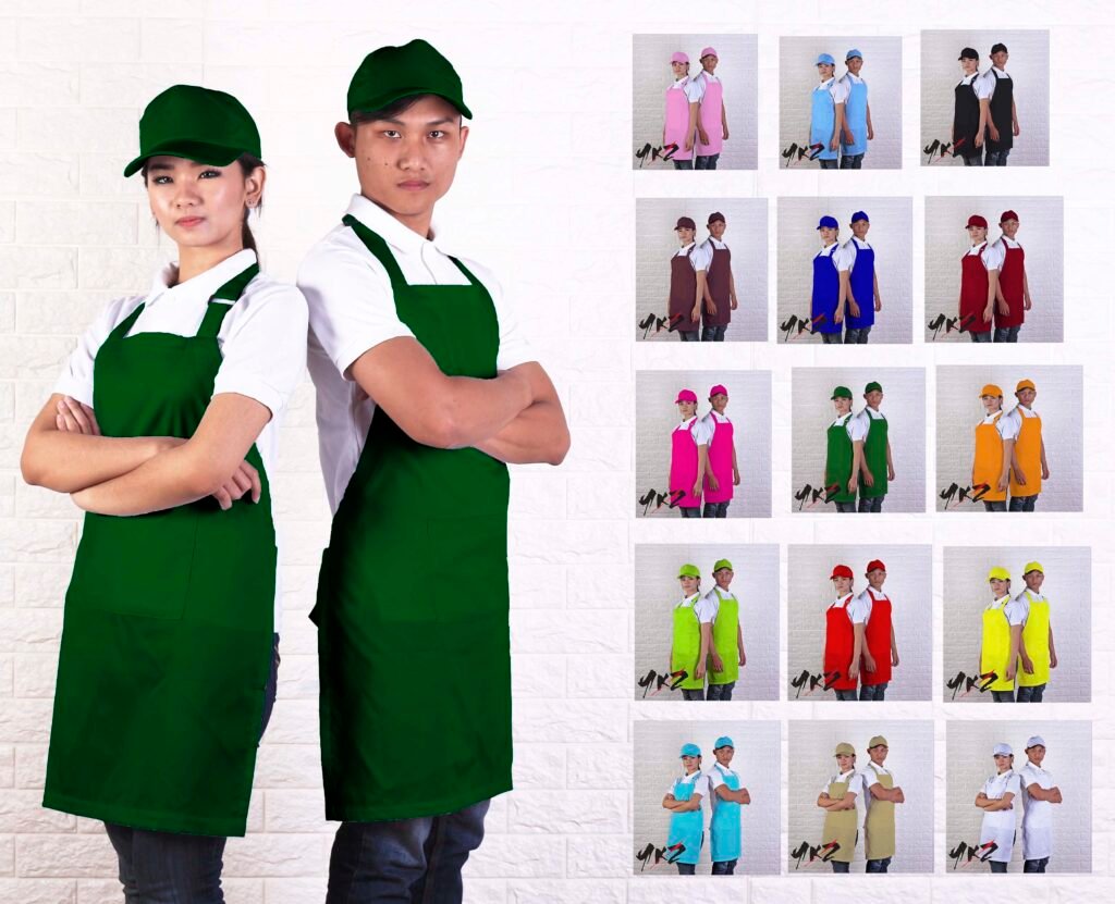 Apron full body biru muda dan topi cap