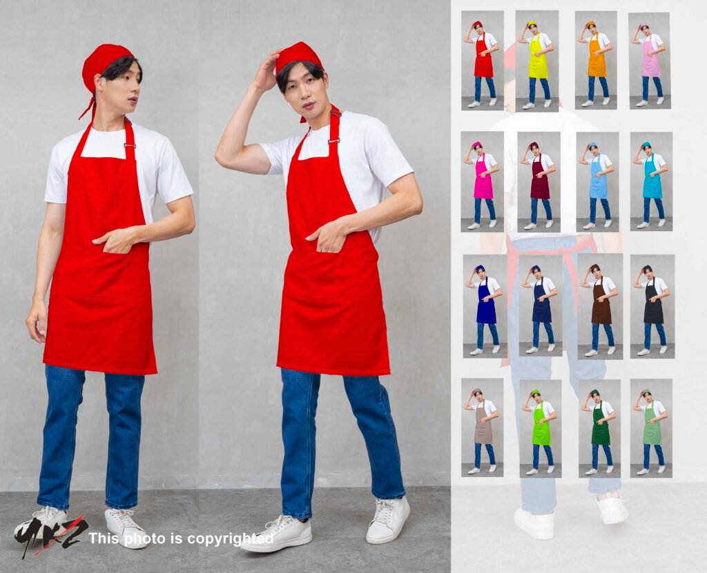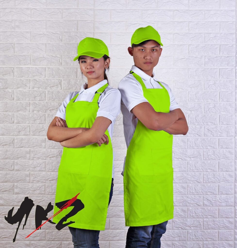 Apron full body fucshia dan topi cap
